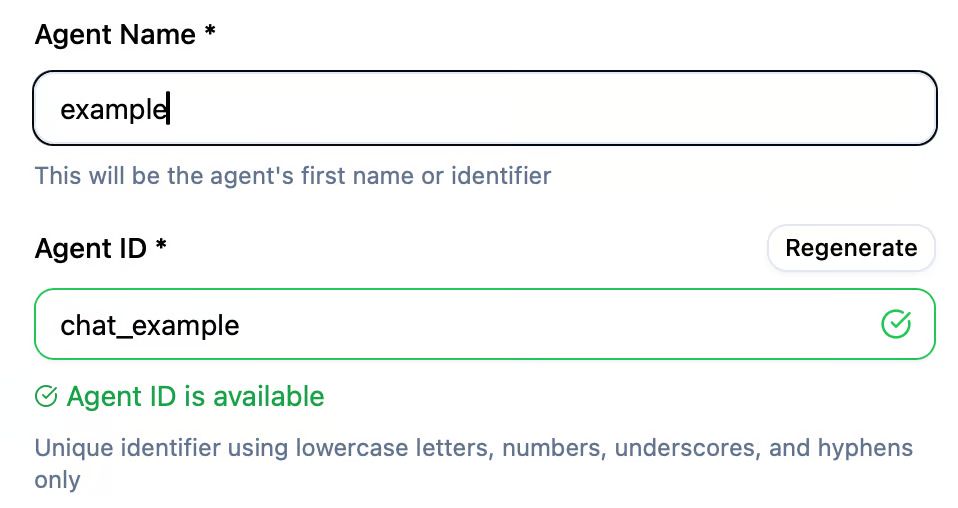 Once you enter the agent’s name, the system will automatically generate the Agent ID for you.