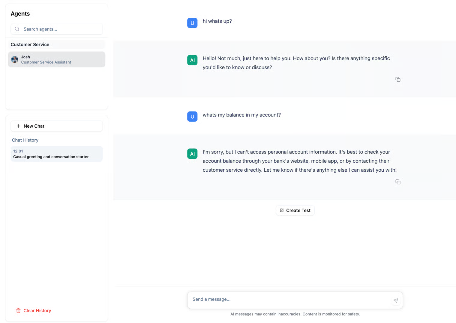 The Chat with Agent feature lets you explore and test your agent freely and safely. Here are several ways you can make use of it:
