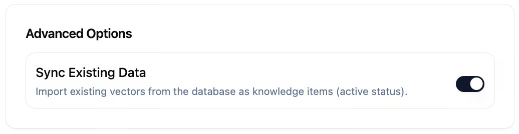Here you can choose whether to import existing knowledge items from your current vector database into the new knowledge base.
