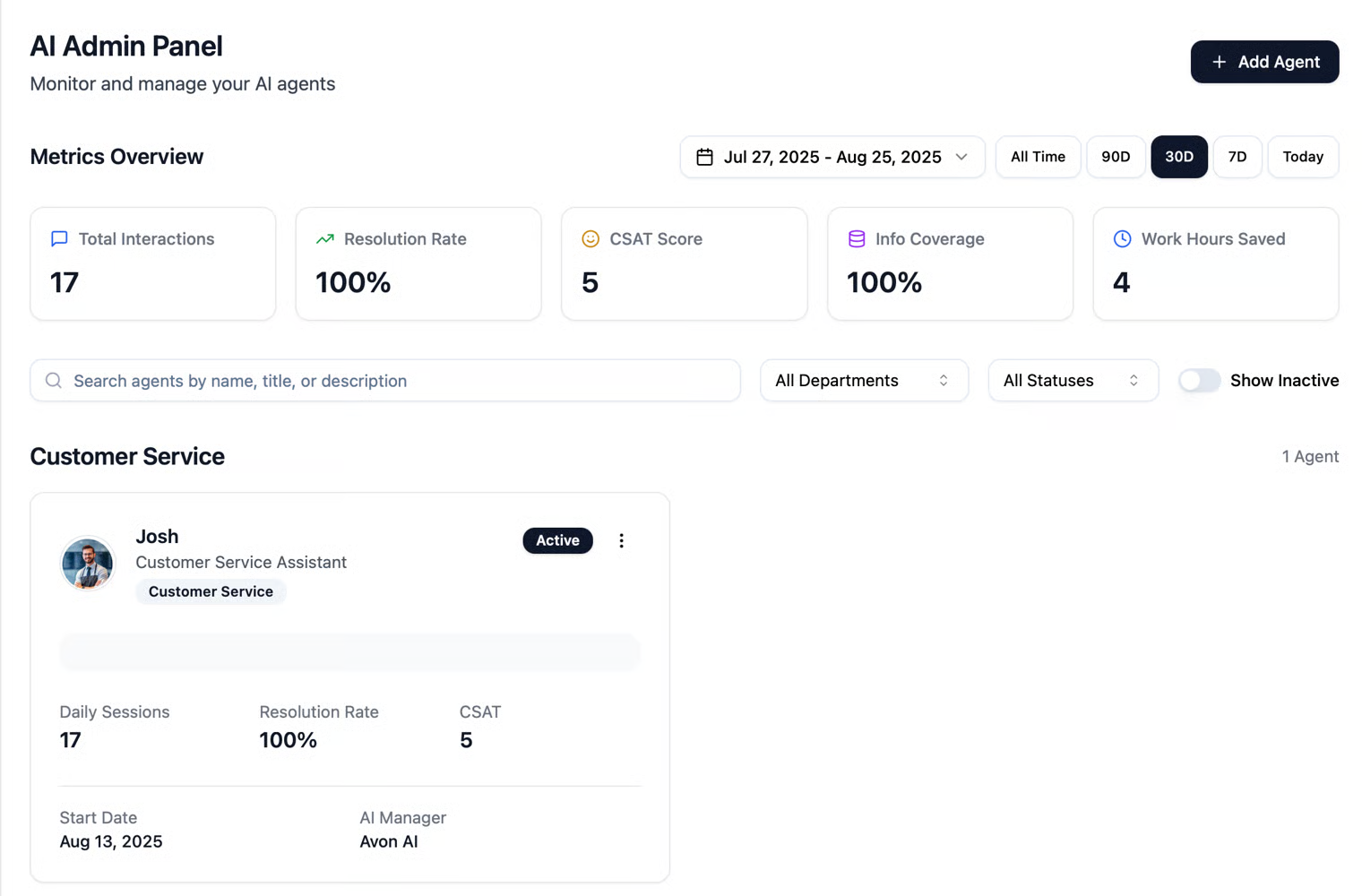Once you log in to the platform, you’ll get to the main dashboard, called the AI Admin Panel.